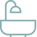 Salle de bain en baignoire ou douche, avec serviettes, produits d’accueil, sèche cheveux…